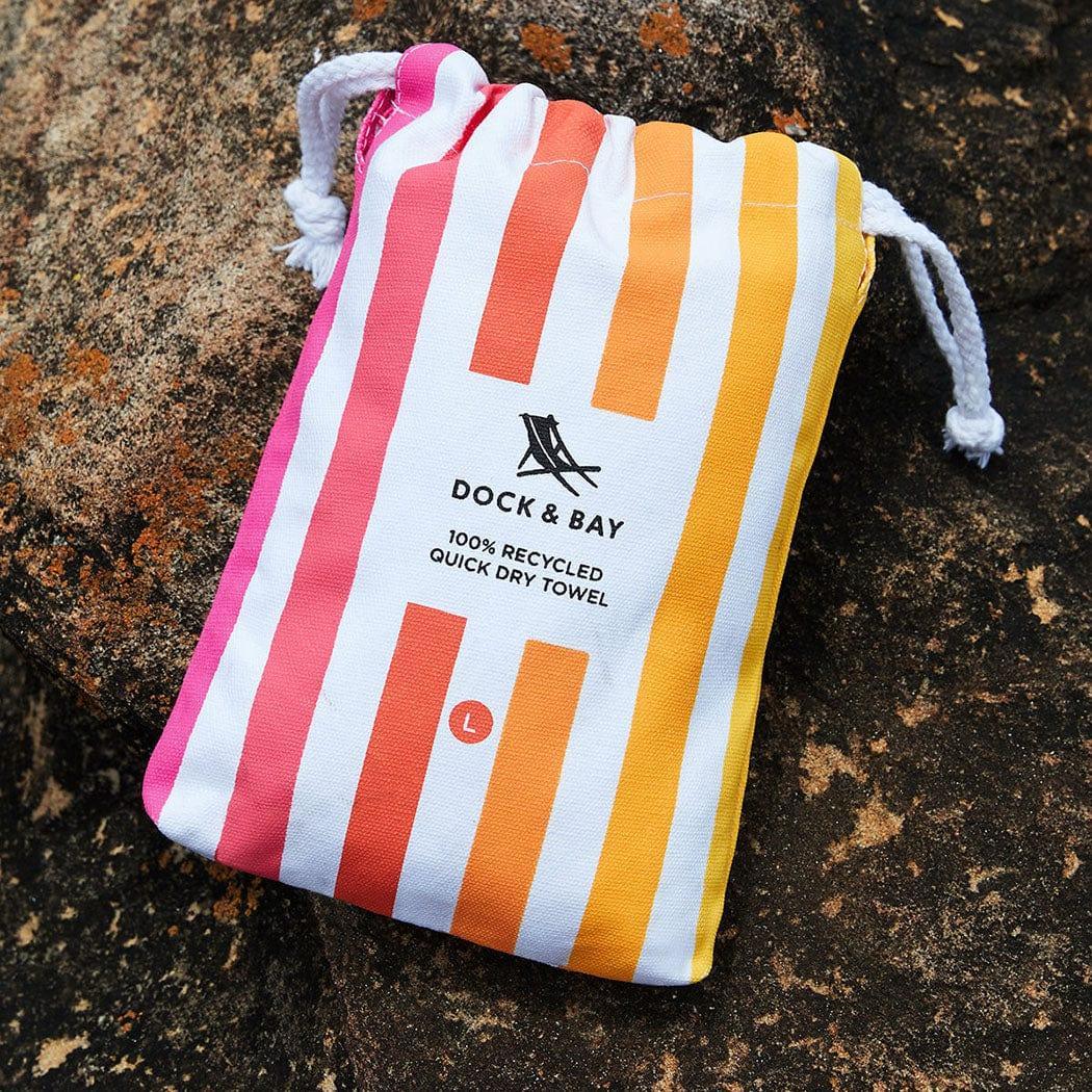 Dock & Bay Cabana Collection features the brand's signature striped pattern in a range of vibrant colours. Made from a quick-dry material, they dry 3 times faster than a standard cotton towel and won't leave damp smells and Light weight, Sand free and compact which means they are the perfect to travel with.